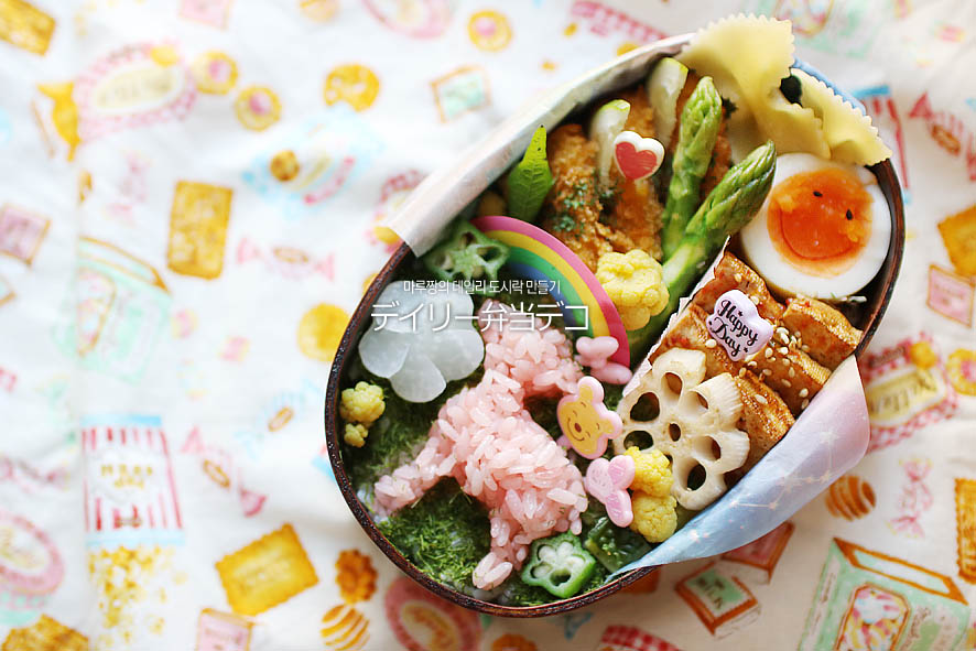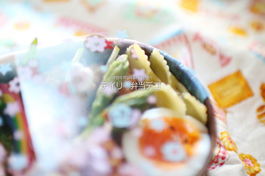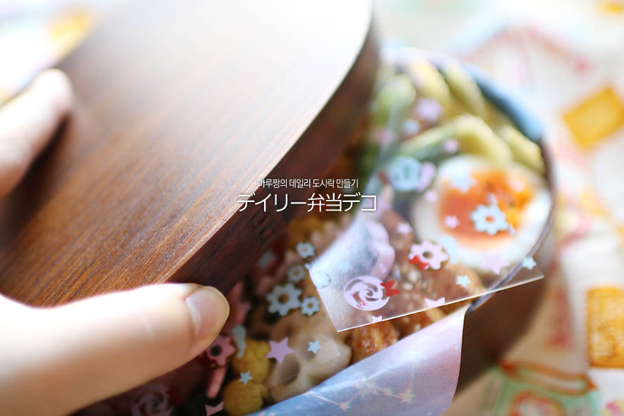 오늘은 도시락 맨 아래에 깔아내는 시트지의 컬러부터가 소녀풍인것을 예감했나봅니다.