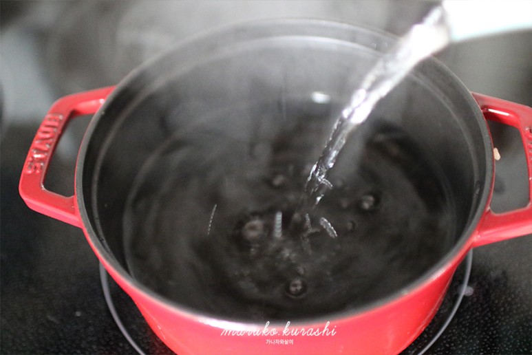 3~4인용 이상으로 550ml정도의 물로 이작업을 하게 되는게 기본인 레시피인데요,