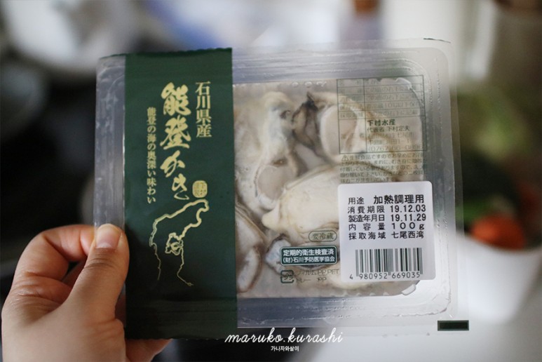 굴은 10개 미만정도 들어가있는 100그램의 이시카와현산 굴을 준비했어요.