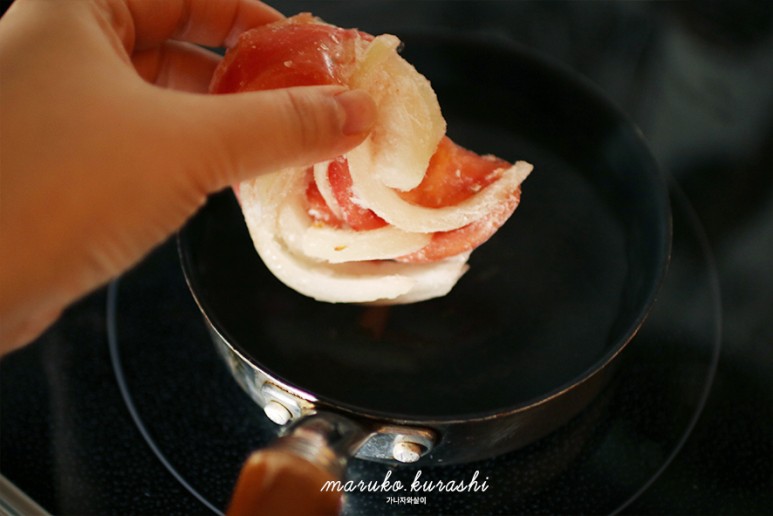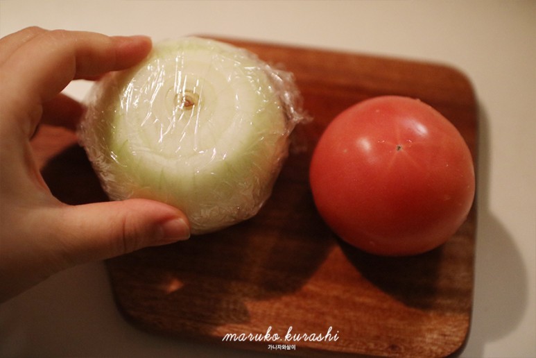 다음에는 양파와 토마토의 야채 밀키트를 만들 것인데요, 밀키트에 관한 자세한 이야기는