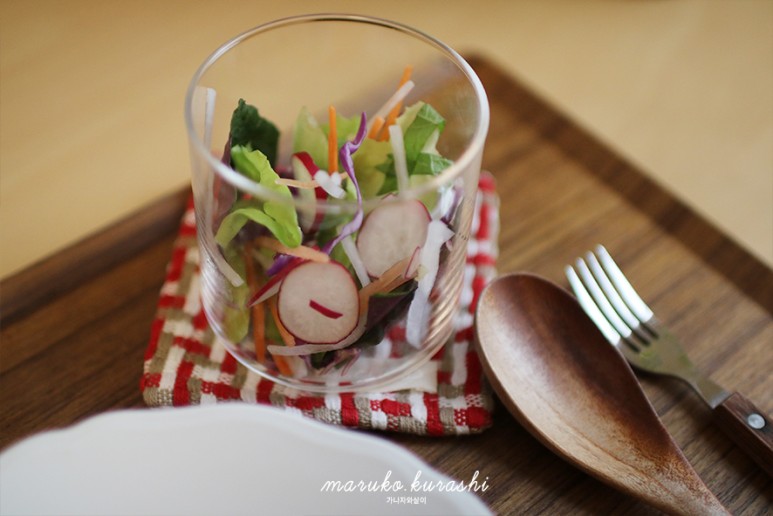 아점으로 함께 먹을 샐러드는, 카페 샐러드를 준비했어요.