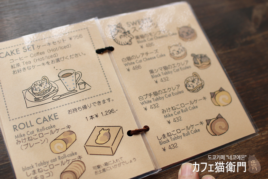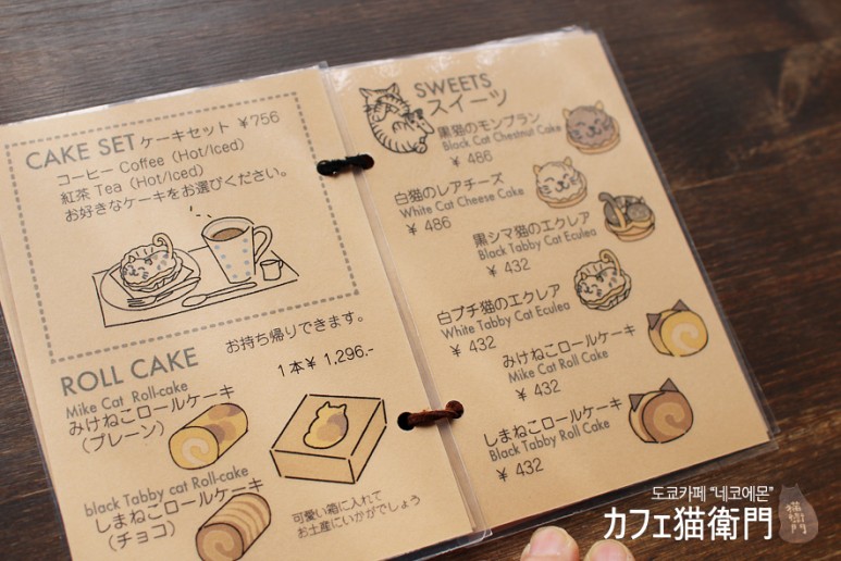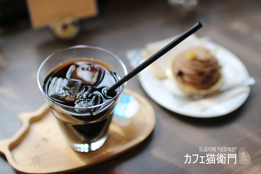 카페 네코에몬에서 인기있는것은 단연 흰색의 네코의 치즈케이크와 에클레어입니다. 에클레어에는 귀엽게 꼬리도 달려있지요. 최종적으로는 남편 아기다리고기다리했던 쿠로네코 몽블랑을 주문했어요.