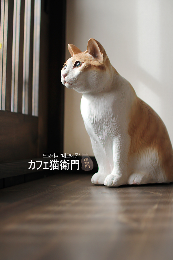 창밖 먼곳을 응시하고 있던 고양이 한마리. 남편 옆에 꼭 붙어서 얌전히. (모형입니다)