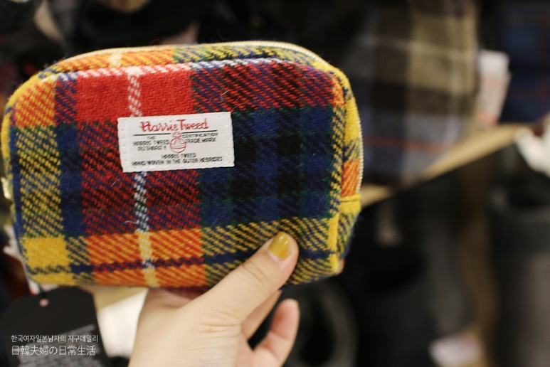 이곳에서 제가 사랑하는원단인 해리스트위드원단을 발견할 수 있었어요. 지난번에 오다이바에서 구매한 사만사타바사 가방을 소개해드리면서 아주 살짝 아쿠아시티의 시마무라에서 만난 해리스트위드 콜라보 파우치와 어느쪽을 선택할것인가 좀 고민했었다는 이야기를 전해드린 적이있는데요,