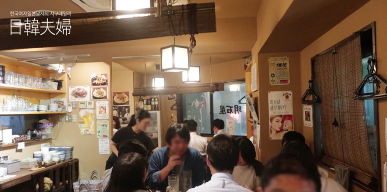 길다란 ㄷ 디귿자 모양으로 된 카운터석에 뺑~ 둘러 서서 거의 100프로는 근처 주변 회사의 퇴근 회사원들이 도란도란 서서 술을 마시고 있는 분위기였습니다. 정말 못들어갈 줄 알았는데, 자리가 비어있는 곳이 드문드문 생겨나서 남편이랑 곧바로 들어가버렸어요.