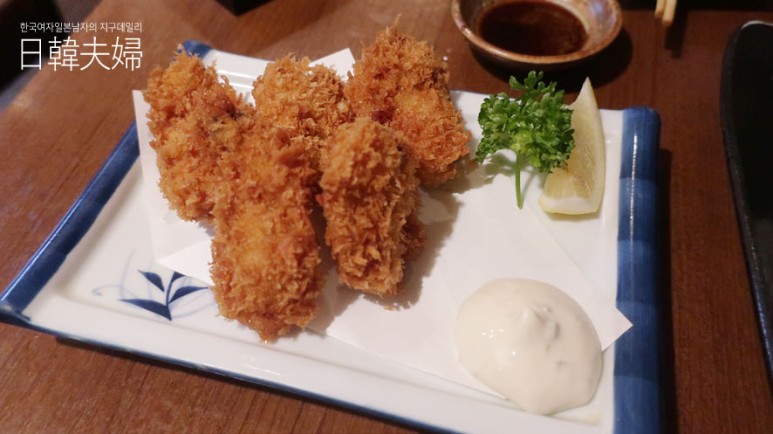 생굴을 주문하면서 함께 주문했던 굴 튀김, 정말 큼직하니, 바삭하고. 적당하게 노릇노릇하게 튀겨진 색감에 두배 세배 배불러지게되는 느낌이예요. 오사카에서 먹었던 굴튀김도 맛있었지만, 대체적으로 일본에서 먹는 굴튀김, 참 맛있다고 생각됩니다.