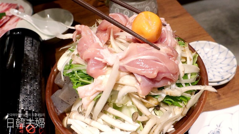 츠쿠네도 들어있고~( 츠쿠네는 좀 먹은 뒤에요) 닭고기도, 부들부들 얇게 빛나는 흙돼지도 들어있고, 이때 모든 재료들의 캐미가 폭발하는 것 같습니다.