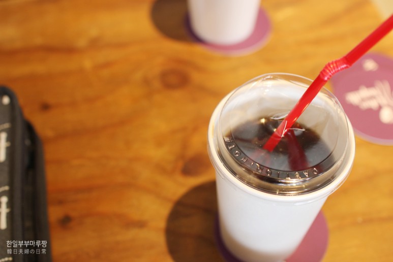 남편과 저는 곧바로 음료만 먼저 계산을 한 뒤 매장 내에 있는 낮고 작은 목각 테이블에 앉아 조금 쉬는 시간을 가졌습니다.