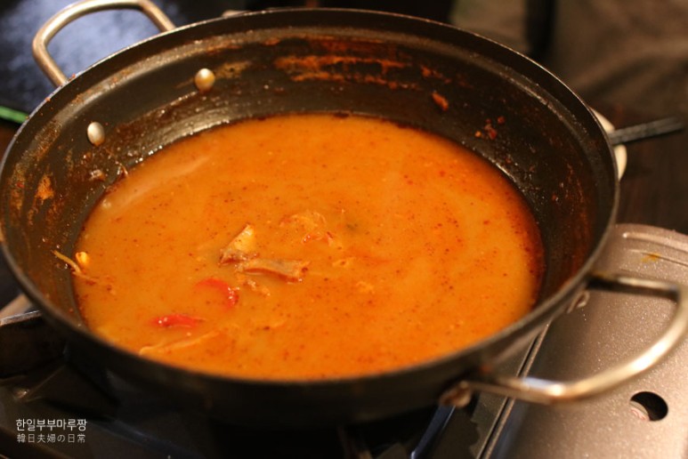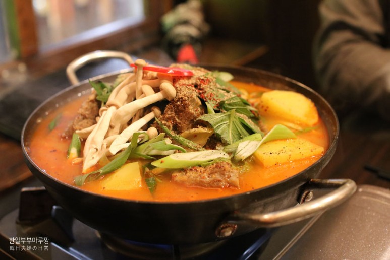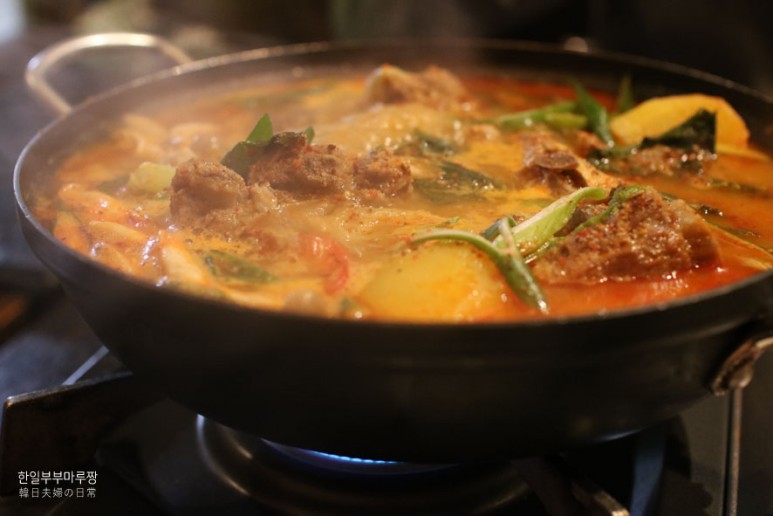 드디어 기대하던 감자탕이 테이블에 제공되었어요. 비쥬얼 끝내줬죠..! 너무 예쁘게 잘 담겨나오는것 같았는데. 가게 통털어 감자탕 주문한 테이블은 저희밖에없었더라구요. 사람들이... 먹을줄을 모르네....(농담) ㅋㅋ 너무나 허기가 져있기도했고, 어서어서 이 일본이라는 나라에서 얼큰하고 따깐따깐한 감자탕의 찌~인한 국물 한스푼 마셔보자꾸나, 라며 보글보글 끓기를 오메불망 기다리기♡