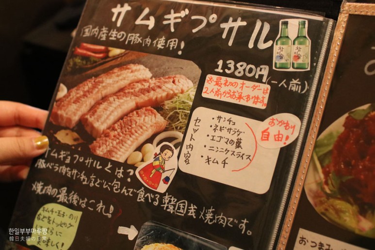 매장에 들어가자마자 처음 들었던 이야기가 "예약하셨나요?" 였습니다. 기본적으로 예약을 해야 앉을 수 있다는 인식이 있을정도로 신바시에서 인기있는 한국 음식 점이더군요. 쓰-윽 주위를 살펴봅니다. 여기저기 두리번 거리며, 가히 한국적 분위기의인테리어로 되어있군, 이라는 표정으로 메뉴와 구석구석 살피는 단나상.