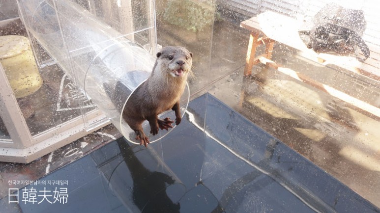 간식이 다 떨어진것을 알고는 더이상 저희 부부에게 다가오지 않던 수달친구들 ㅋㅋ 요 얌채같은 녀석들! 수달 손이 제 손에 맞닿았을때에, 정말 이상한 기분이 느껴졌어요. 그 작은 손으로, 그 작은 사료를 꼭 쥐어 가져가는데, 와.... 정말 이곳에서만 느낄수있는것 아닌가 싶은 생각이 들더라구요. 사실 일본에는 수달을 키우고있는 분들을 꽤 볼수가 있어요.