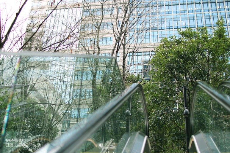 그리고 외부 지상과 연결된 에스컬레이터를 타다보면 숲을 뒤로하고 지상으로 빠져나올수가 있는데요, 에스컬레이터가 올라가는 순간에도, 온 사방으로 푸르게 지나치는 숲들을 경험할 수 있음에 여름이 되면, 무척이나 싱그러운 공간이 될것이라고 생각됬어요.