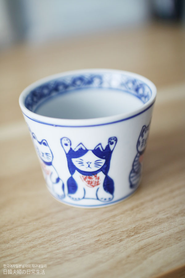 하지만 공간이 사람을 만들기도하고, 수십년된 오래된 일본의 집 안에서 제가 단번에 선택한 컵이 바로 이 컵이었습니다. 여러가지 고양이 형태가 붙어있는 머그컵들도 존재했지만, 그렇게 귀엽고 사랑스러운 컵 보다는 손잡이도 없고, 파란 컬러로 통일된듯한 조금은 차가워보이고, 아무 욕심 내지 않은채 존재하는 것만같은 이 잔이 그렇게도 마음에 들었습니다.