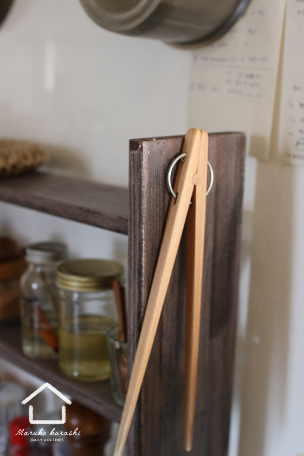 가장자리 소스통이나 기타 소품을 놓는 자리로 2단의 작은 나무 수납장을 만들기로 결심했어요.