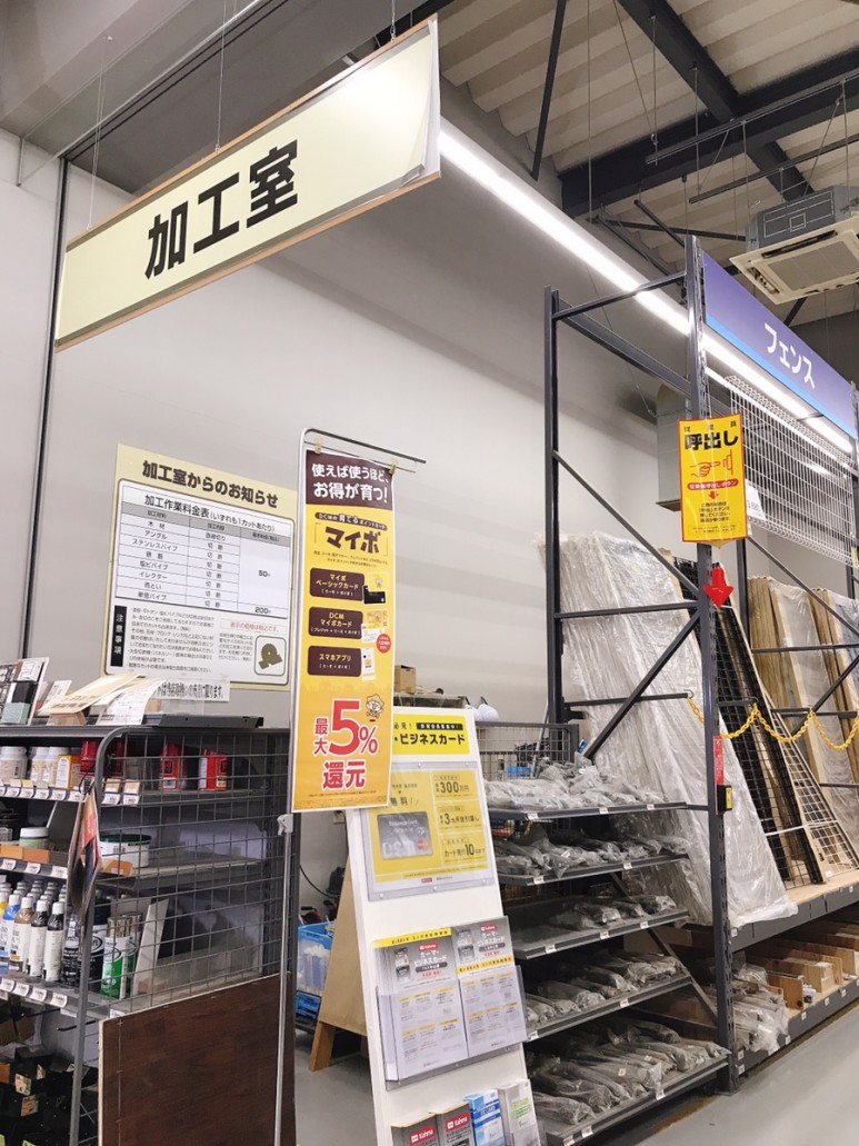 구매한 나무를 원하는 사이즈로 절단을 해주세요. 원컷에 50엔정도만 더 지불하면 되는데요,