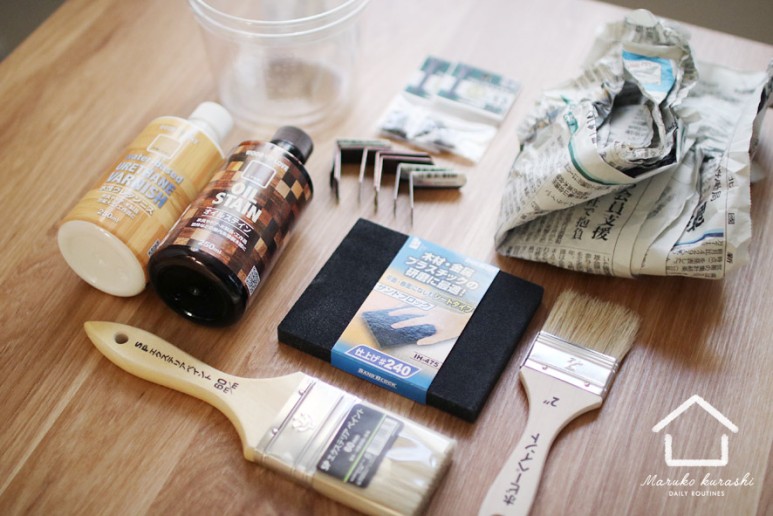 필요한 나무판자, 칠할 색, 겉표면 바니쉬, 작업통, 나사(28), 드라이버, 코너꺽쇠(8개)