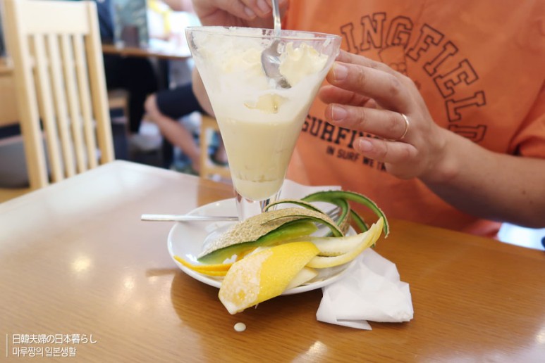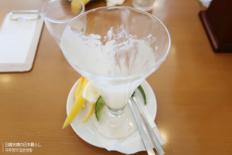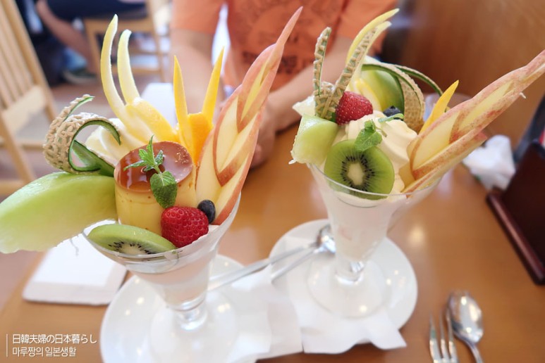 식사 완료! 둘이서 성대한 파르페 1700엔, 정말 저렴하네요. 다른곳에서 먹는다면 파르페 1개값이어도 모자른데, 신선한 과일과 풍성한 볼륨,