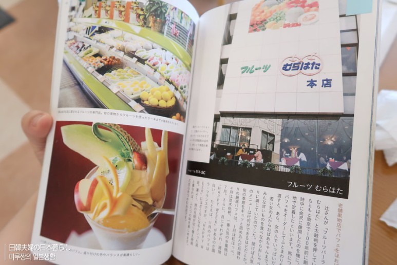 진열되어있든 잡지중 한곳에, 바로 우리가 지금 앉아있는 스위츠 파르페가게 "후르츠무라하타"가 게재되어있는것을 발견하게되었어요. 역시 신선한 과일을 바로 사서 집으로 돌아갈 수 도 있는 과일상점도 함께 있다는것은 매우 큰 매리트가 되는 것 같아요. 보기힘든 금액과 볼륨의 일치.