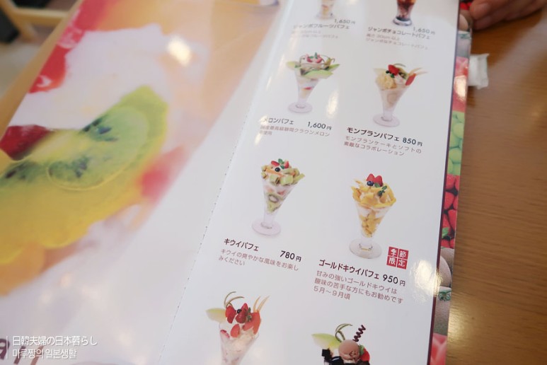 특정 메뉴 일부만 2천엔대를 넘는것들 제외하고는, 도쿄의 고급 파르페 상점과 견주어봐도 다를바가 없어보입니다. :) 맛은 말해뭐해 고요.