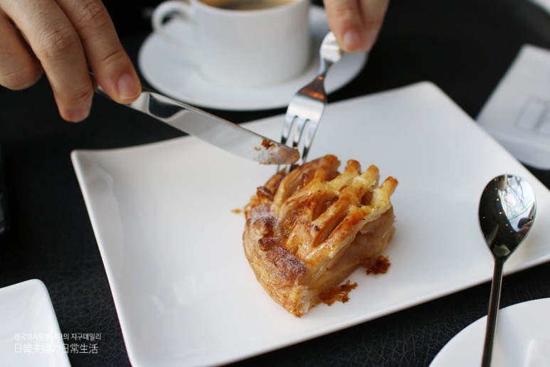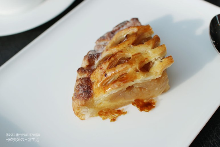 안쪽에는 촉촉하기 그지없는 사과가 들어있고, 겉 표면은 거침없이 바삭바삭한 동시에 부드러움도 느낄수 있는 페스츄리 느낌의 애플파이였어요.