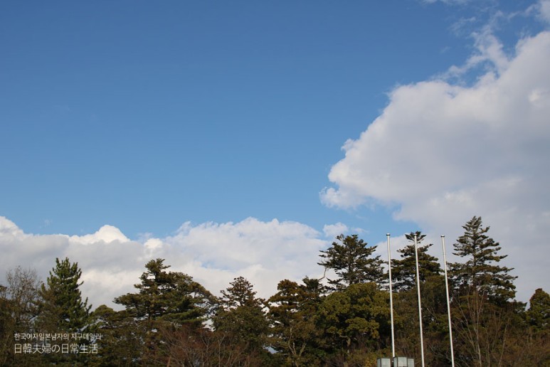 단 10분 이내에 하늘에서 비도 촥- 뿌려주고, 소금도 뿌리고(얼음알갱이) , 갑자기 확- 맑아져 화창해지는 정말 사춘기 오춘기 뺨치는 가나자와의 날씨를 뚫고 남편과 근처 겐로쿠엔 근처로 나갑니다.