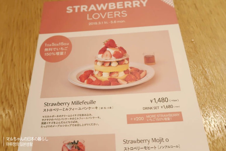 저희가 주문한 메뉴는 STRAWBERRY MILLEFEUILLE딸기 밀피유 팬케이크.