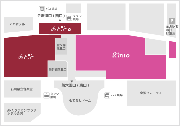 가나자와 역에는 크게 3개의 쇼핑 센터(몰)이 존재합니다.