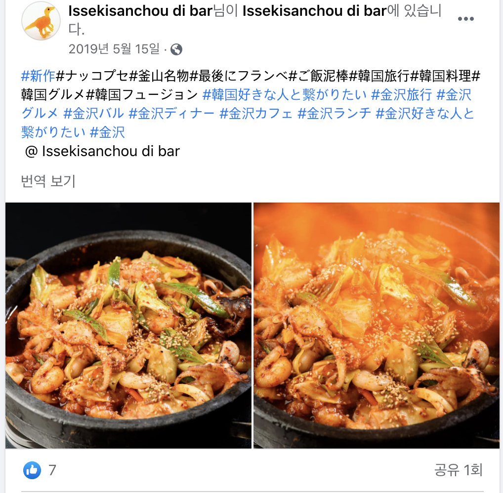한국분들은 좀처럼 오지않는다고 하시니, 지나가시다가 방문하시면 사장님이 많이 기쁘실것 같아요. 가나자와까지 와서 한국음식을? 이라고 생각하실수있지만 사실 한국스타일로 만드는 사장님 손에서 응용된 또다른 스타일의 요리로 탄생하기때문에, 기대해보셔도 좋을 것 같습니다.