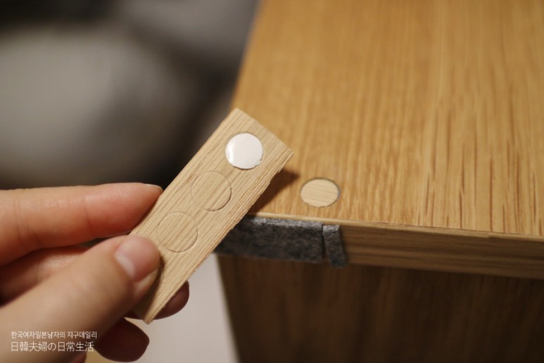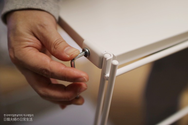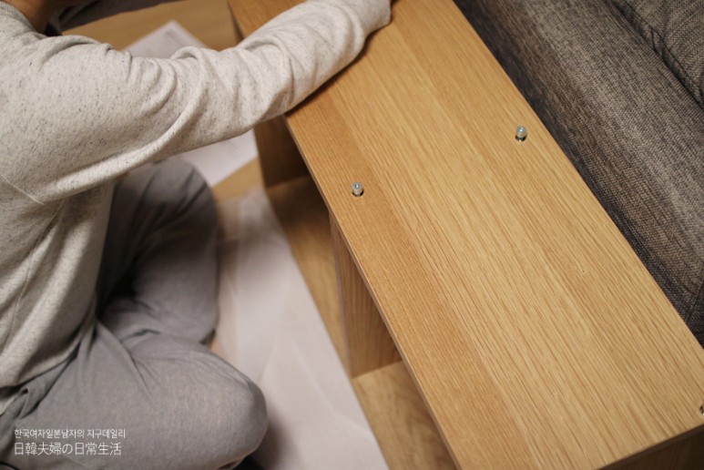 저는 별 도움이 못되고, 밑에 안전하게 긁히지 않는 부직포 스티커를 붙여주거나, 나사가 지저분하게 보이지 않도록 , 원형 테이프로 나사를 가리는 스티커 작업을 하거나, 했습니다. (웃음)