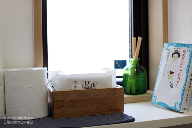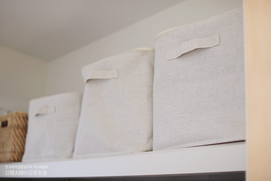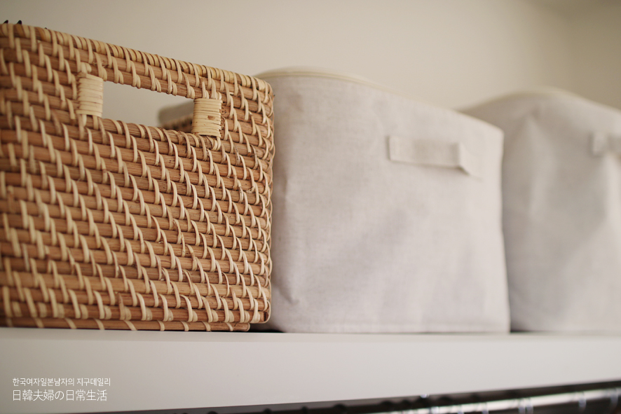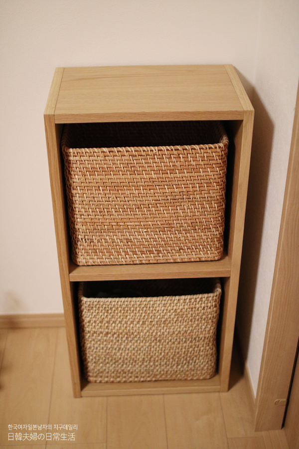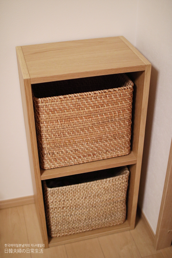 ※이 사진의 라탄 바구니는 무인양품이 아니라 니토리 라탄 케이스입니다. 구멍난부분 양쪽 넓은 마무리 형태는 니토리임.