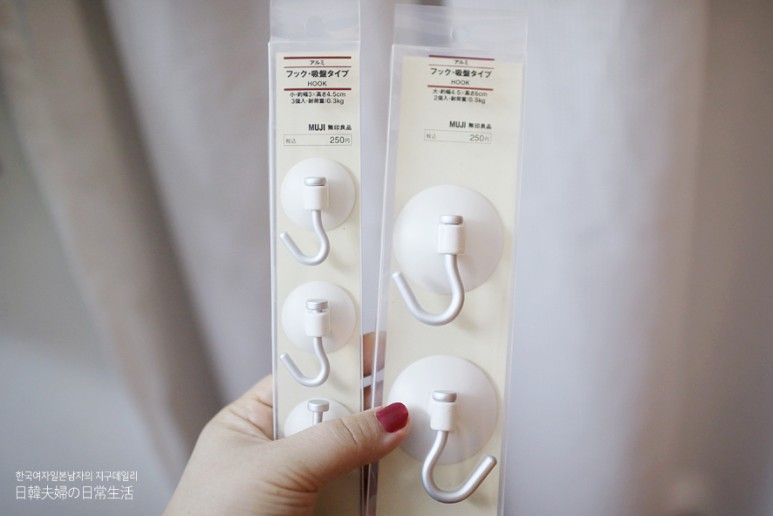 무인양품에는 자석과 빨판, 그리고 일반 고리와 집개 형식의 후크들이 굉장히 많아요. 원하는, 사용하고자하는 디자인과 형태별로 골라서 인테리어 꾸미기하시면 굉장히 도움이 되실 것 같습니다.