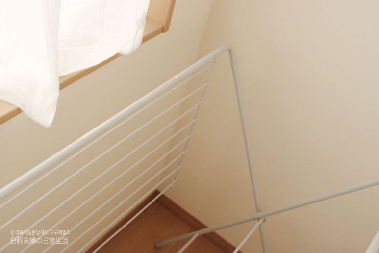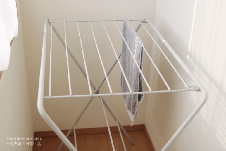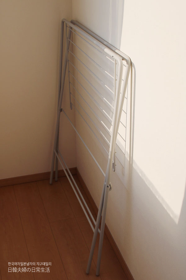 하지만 한국에 살때에는 베란다에 천정에 건조대까지 붙어있어 굳이 실질적으로는 필요하지않았어요. 남편이 옛날에 사서 쓰던 스텐레스 건조대까지 가지고 있었으니, 있는것으로 사용하는게 현명했죠. 밝은 회색빛의 차분한 컬러.