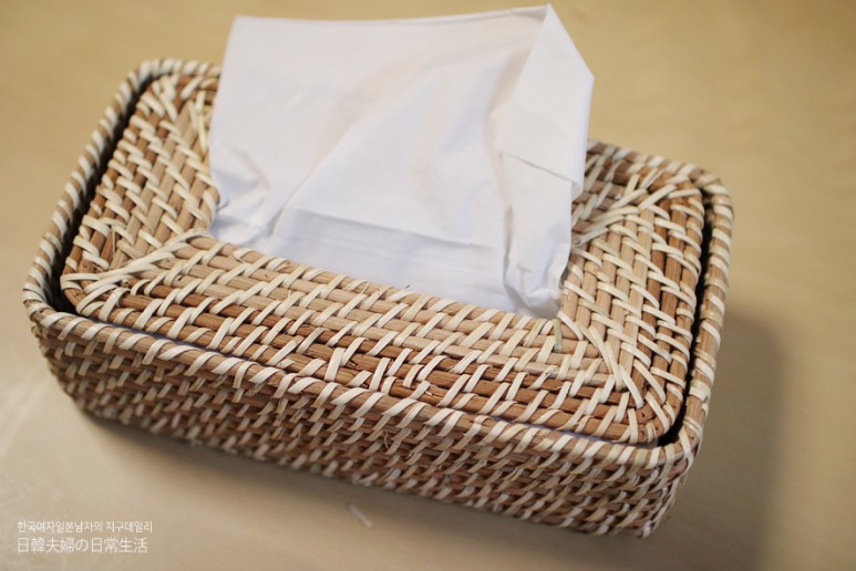 자주가는 지점에서 주문을 넣고 일주일정도 기다려서 받은 라탄 티슈상자, 늘 매장에 방문해서 라탄 케이스 쪽 진열대를 쭉- 볼때마다 항상 보이지 않는것이 이 티슈 상자였어요. 한번,,, 두번,, 세번,, 계속해서 기다려보다가, 아. 이건 잘 안들어오나보다 싶어 그제서야 문의를 하고 주문을 넣었지요.