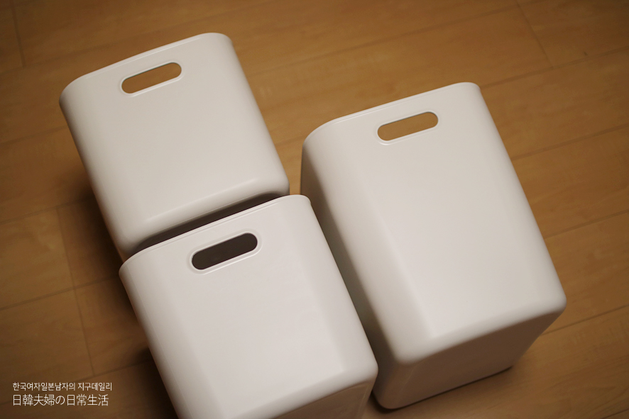 개인적으로 좋아하는 시리즈 이기도하고, 양옆에 손잡이가 뚫려 몰캉몰캉 참 부드러우면서도 단단하고, 그리고 무엇보다도 물에 젖어도 영구적으로 손상이 없는 소재이다보니, 저는 둥글고 깊은 사이즈를 세탁 용도로 사용하고 있어요.