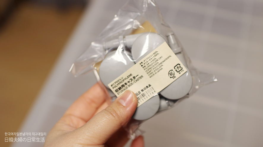 저희가 본 프로필렌 박스는 무인양품 입구의 전 벽면을 찾이하고 있을 정도로 디스플레이가 굉장 했는데요, 많은 고객들이 편리하게 함께 볼 수 있도록 박스 옆에 이 수납박스 캐스터를 별도로 진열해두고있었어요. 손님들은 고민없이 함께 구매할 수 있기 딱 좋은 것 같아요.