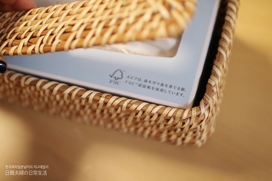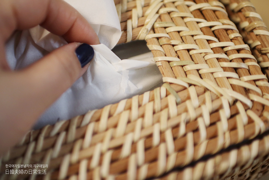 자주가는 지점에서 주문을 넣고 일주일정도 기다려서 받은 라탄 티슈상자, 늘 매장에 방문해서 라탄 케이스 쪽 진열대를 쭉- 볼때마다 항상 보이지 않는것이 이 티슈 상자였어요. 한번,,, 두번,, 세번,, 계속해서 기다려보다가,  아. 이건 잘 안들어오나보다 싶어 그제서야 문의를 하고 주문을 넣었지요.