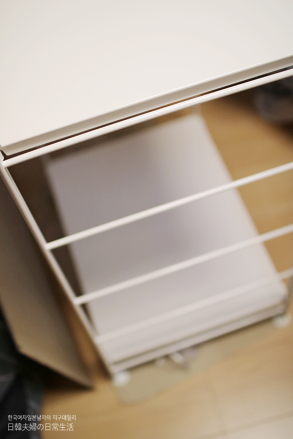 현재는 다른 무인양품의 수납 케이스를 별도로 넣어 자주 보는 책들이나, 생활정보지 같은것을 수납, 가위나 테이프 등 일상 문구류들과, 맨 위에는 적당한 높이에 딱 좋게 아버님 불단을 꾸며 두었어요. :)