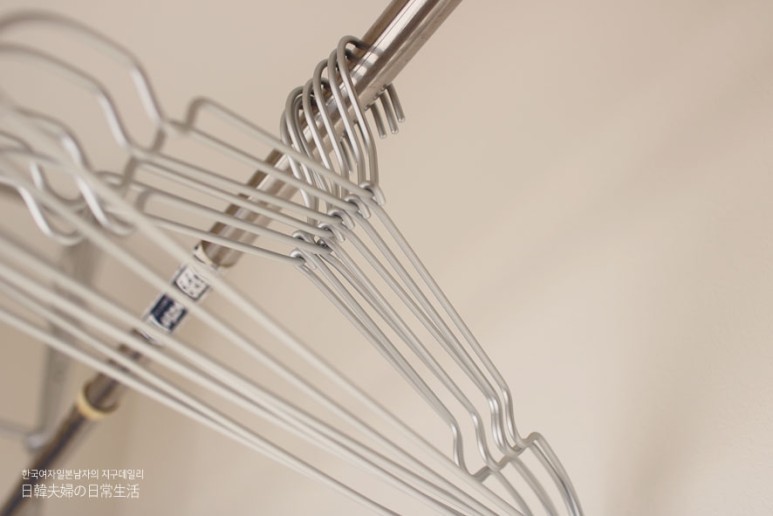 썬룸에 세탁한 옷을 건조하면서 남편의 얇은 셔츠, 남방, 기타 티셔츠 등등을 걸어두어 빨랫걸이를 건조할때 사용하기위해 구매한 알루미늄 세탁 옷걸이 입니다. 말그대로 세탁옷걸이라 세탁실에서 사용하면 가장 적합하게 사용하시는 걸거에요.