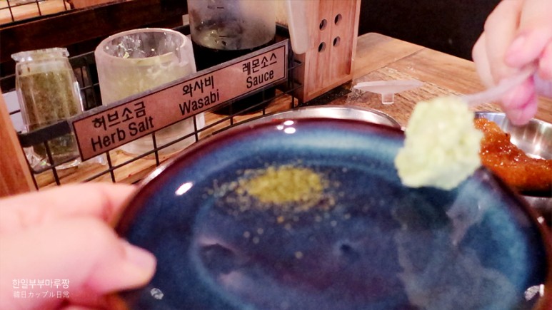 그리고 정말 기특한 녀석, 은은하게 달달한 맛이 나는 도마에서만 맛볼 수 있는 이 와사비는요. 그냥 조금 맨입으로 먹어도 맵지않고 은은하게 올라오는 달달한 맛에 빠져들고 맙니다. 정말 고기에 얼마나 발라 먹었던지, 단맛이 나는와사비 소스, 상상이 가시나요?