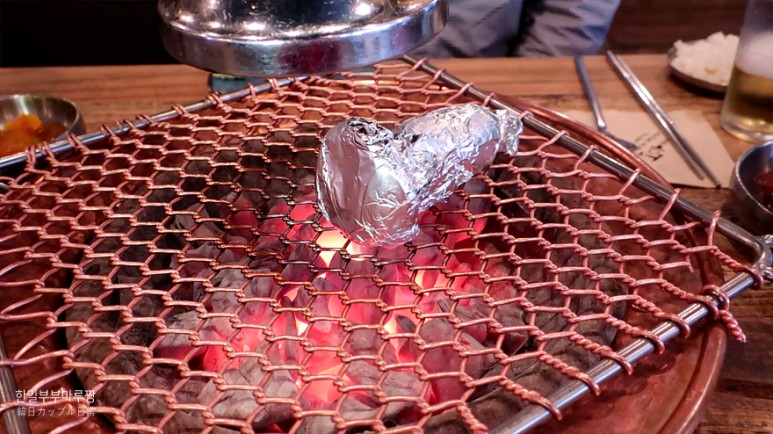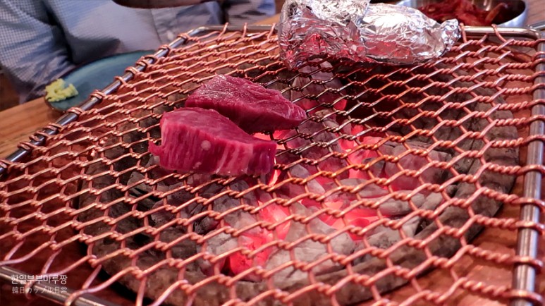 불 위에 올라간 이기적인 자태 ♡ 정말 뱃속에 여유가 되신다면, 단품들도 하나씩 주문해보시라고 추천드리고싶어요. 저희가 이걸 주문한 이유가 남편이 처음 이집에 와서 이 고기를 잊지못하고 메뉴 이름은 모르고, 형태만 기억하고 있었기떄문입니다.