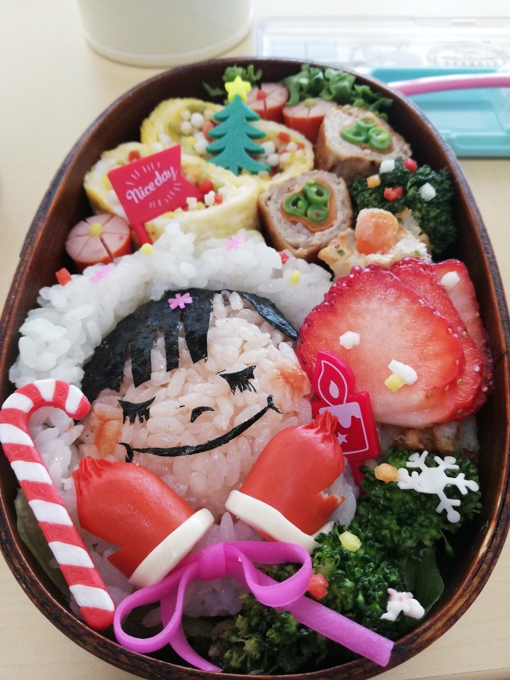 지난번 일본 도시락 콘테스트 특별상 상품으로 받았던 귀여운 크리스마스픽, 흔하지 않은 도시락 픽이다보니 도시락 안에서 좀더 존재감이 뿜뿜 드러나는 듯 해 보입니다. 소세지는 칼집을 내어 최대한 건강한 맛으로 먹기위해 물에 데치기만했습니다. 일본 식재료인 아라레를 넣은 계란말이도, 칼로리는 꽤 높을지도 모르겠지만, 식감이 맛있는 재미난 반찬으로 탄생하였어요.