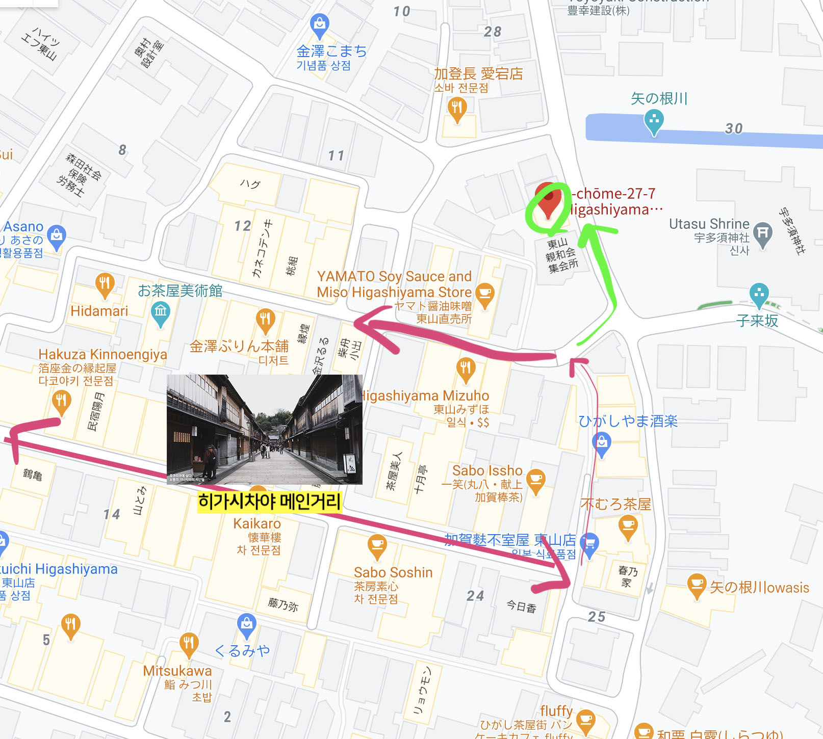 그리고 오늘 전하게될 이야기속 타몬 카페의 팬케이크는 가나자와 수플레 팬케이크의 끝장판이라고 볼 수 있을 것 같습니다. 관광객 분들이 쉽게 여행코스로 접하고계셨던 3대 찻집거리 중 한곳인 히가시차야 메인 거리 근처에 위치하고 있습니다.