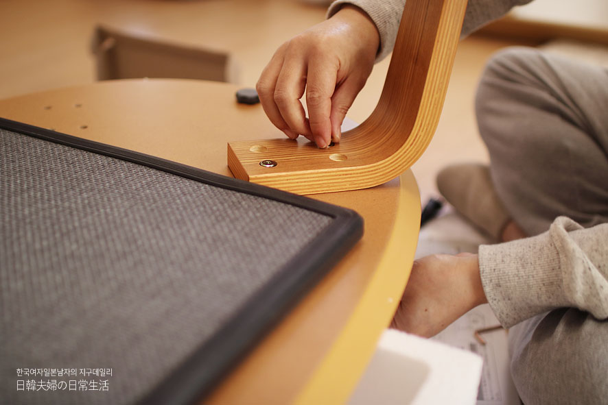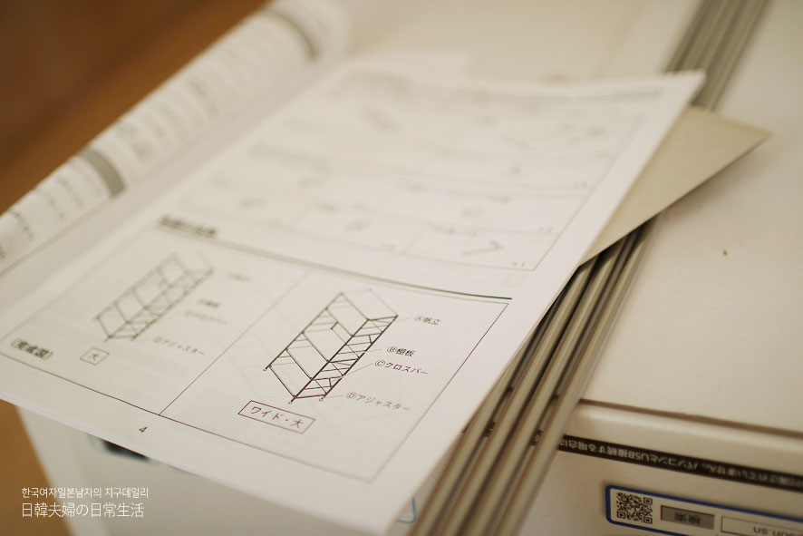 남편은 옆에서 함께 배송 도착한 코타츠를 조립하고 있었고, 저는 유닛 선반 박스를 조심스럽게 꺼내봅니다. 냉장고와 같은 높이의 선반 철재길이에 감탄사를 뿜어냈지만, 이건 도저히 혼자서는 무리다! 라는 결론에 남편의 20kg의 코타츠 조립을 도우며 작업이 끝나기만을 기다렸습니다.
