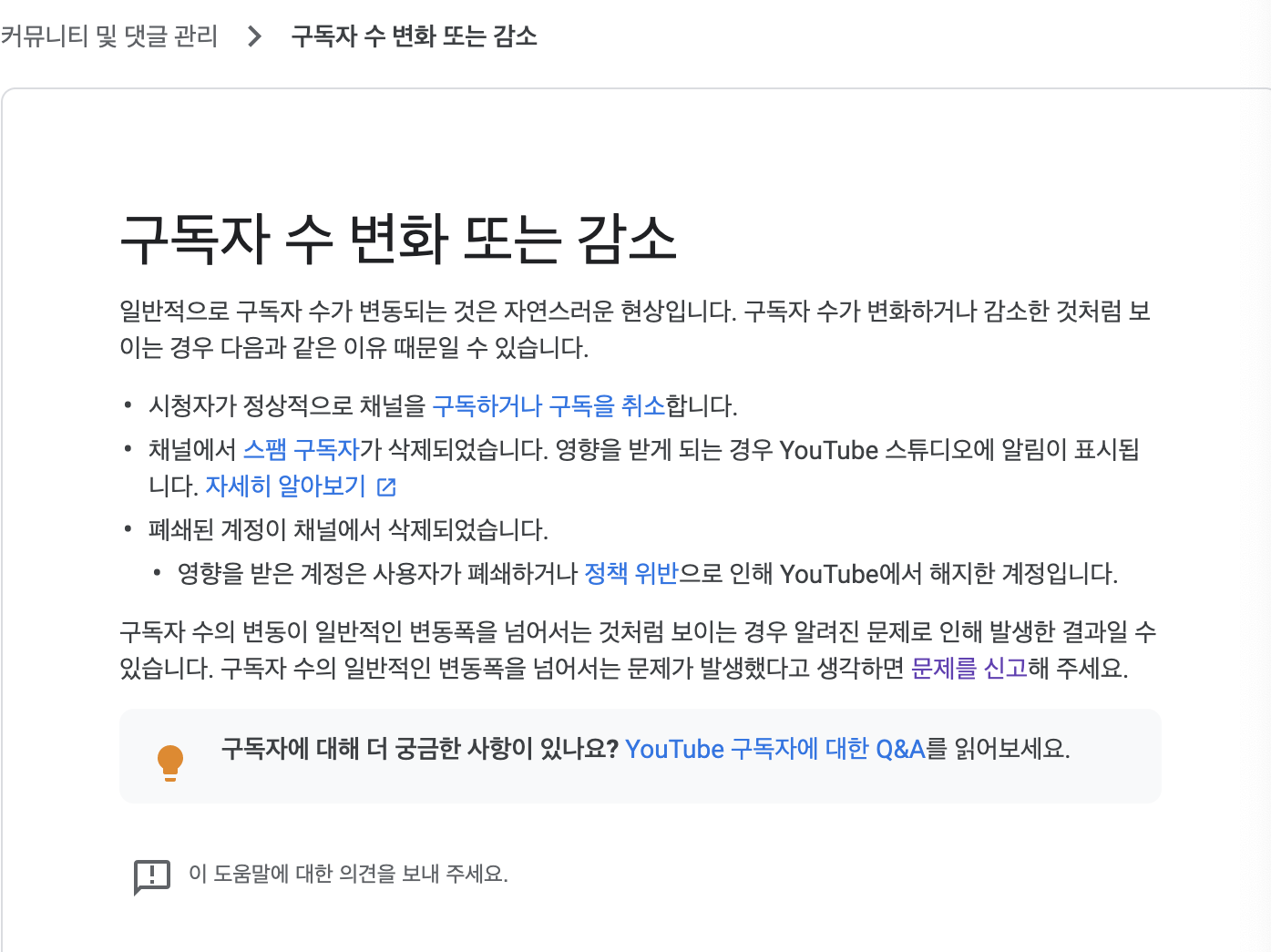 유튜브에서 설명하고있는 "구독자가 줄어드는 이유"