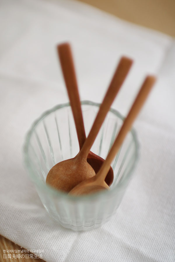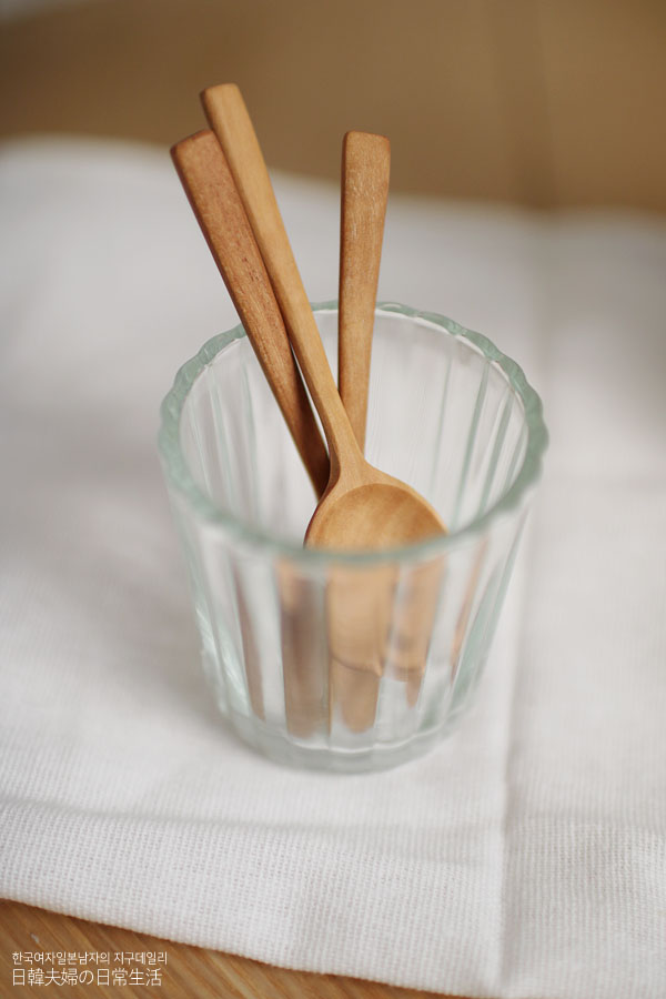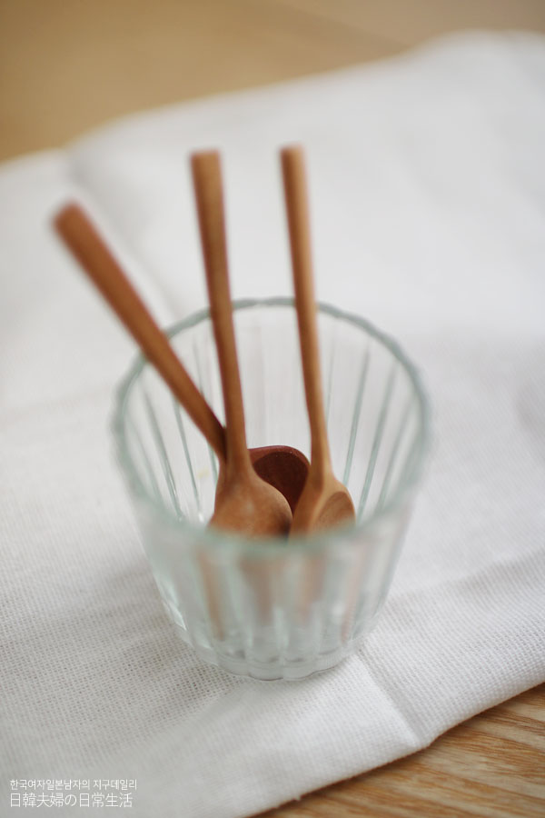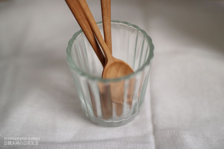 블로그에도 종종 소개하고 있는 니토리(일본)에서 구매한 캔들 유리잔을 이용해서 히타치야에서 구매한 스푼들을 넣을 수 있는 공간을 만들었어요. 니토리는 지점마다 입고되는 제품들도 아주 조금씩이라도 다른점이 있는 것 같아요.