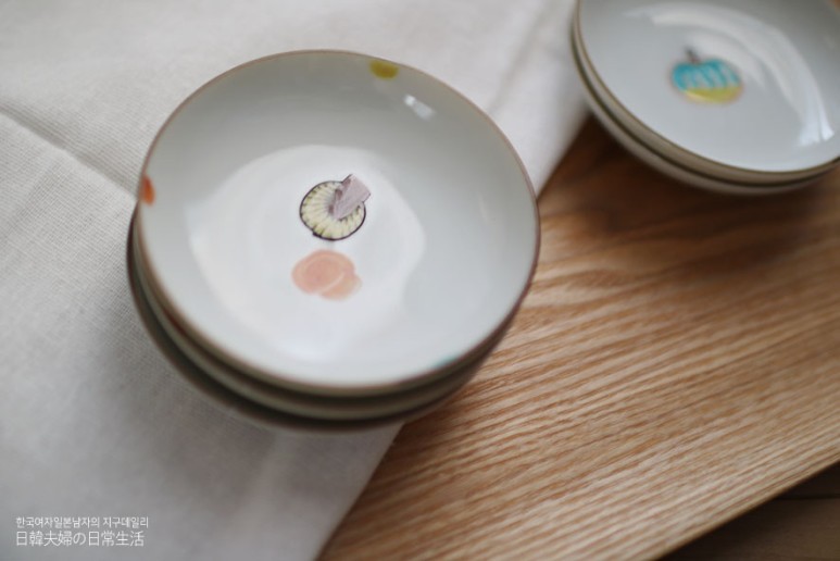 처음 이 식기를 봤을때에, 반찬들 조금씩 담아내면 참 예쁘겠다. 갖고 싶다. 라고 느꼈었어요.