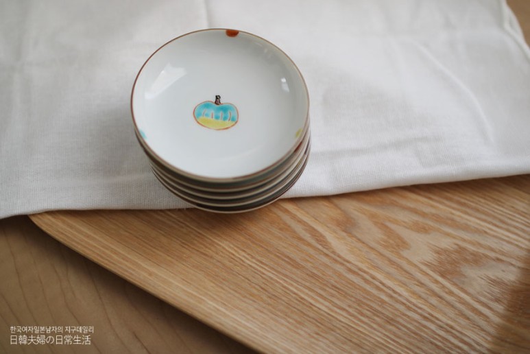 그런데 3,000엔이라는 금액만 보고는, "아 이거 하나에 3천엔인가, 귀엽긴한데 좀 가격이 나가네 " 라며 작년부터 구매를 미루고 있던 접시였어요. 헌데, 옆에 작게 써있는 "Set"라는 의미의 설명들을 제대로 확인을 못하고, 이번에 방문했을때 5개의 각각 다른 그림의 수량이 한 세트로 3만원대라는 이야기에 , 씐나서 덥석 데리고 왔습니다 .