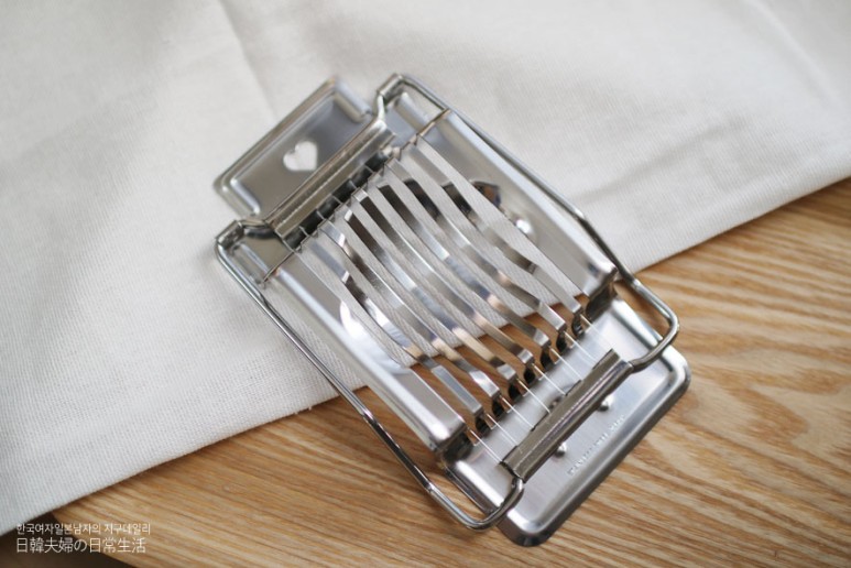 세금 합하여 600엔에 구매한 계란 슬라이스 컷팅기 입니다. 상단 부분에 하트모양으로 뚫린 부분이 참 귀여워요.