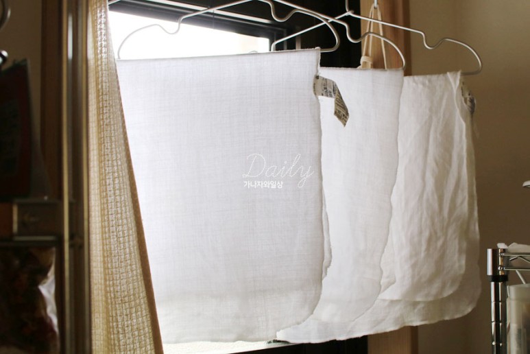 예전에 무인양품에서 구매했던 기장이 꽤 길다란 두툼한 면 천인데요, 식기류들 물기 닦을때 으뜸이라, 굉장히 자주 사용하고있죠. 자주사용하는만큼, 색이 잘 바라기도하고, 뭐가 묻기도하고... 계속해서 입속에들어가는 식기들 등을 닦을 아이들이라 언젠가부터 "이건 반드시 소독해야 할텐데...."라며 계속 신경쓰고있던 와중에, 마음에 드는 냄비를 찾게되서 다행입니다.