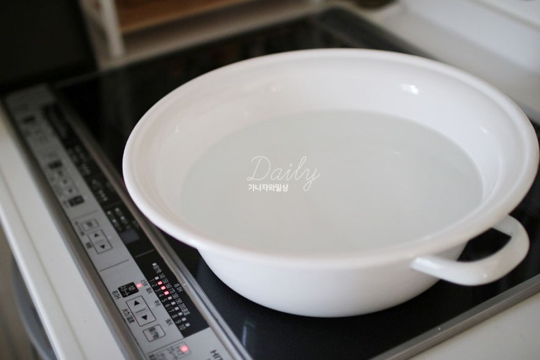 통에 물을 담고 끓입니다, 부글부글될때까지 끓이지도 않지만, 그때 넣으면 확- 부풀 가능성이있으니, (거품이 엄청 부풀어 오를 가능성)